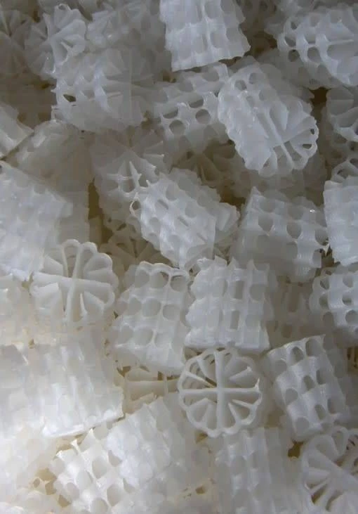 Dankzij het hoge beschermde oppervlakte biedt het zeer hoge biologische filtratie in vergelijking met andere bioringen. Kleur: wit. Op de foto hiernaast wordt het verschil getoond tussen nieuwe (witte) bioringen en ‘gerijpte’ bioringen met biofilm (donker).