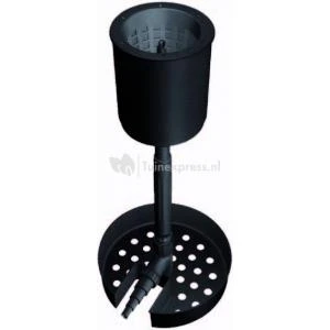 Drijvende skimmer op standaard Kunststof sateliet skimmer voor het afzuigen van oppervlakte vuil in uw vijver. Groter vuil zoals bijvoorbeeld bladeren zal worden opgevangen in het filtermandje. Het mandje is eenvoudig uit de skimmer te pakken en scho…