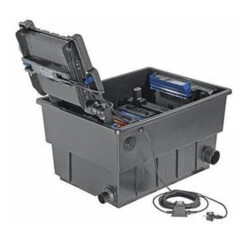 Dit filtersysteem is voorzien van een uitgekiende functiecontrole en aanpasbaar reinigingssysteem wat garant staat voor een uitstekend resultaat! De BioTec ScreenMatic2 is de opvolger van de BioTec ScreenMatic. Dankzij de ingenieuze verbeteringen ten opzichte van het vorige model is het doorstroomfilter nu voorzien van een intelligente functiecontrole. Sensoren, die de regelbare automatisch reiniging regelen, herkennen hierdoor de vervuilingsgraad en sturen op basis hiervan de band automatisch in beweging. De nieuwe indeling van de filtermousses en de geoptimaliseerde waterstand zorgen voor lange standtijden omdat de grove vuildeeltjes nu automatisch worden afgescheiden, nog voordat het water in het filter stroomt. De vuilkorf, die voorkomt dat het vuil uitspoelt naar de filterkamer, beschikt tevens over een groter volume en is veel makkelijker te hanteren. Voor nog betere afscheidingsresultaten is het filter voorzien van een met rubber afgewerkte afscheidingsclip en om efficiënt zweefalgen en ziektekiemen uit het vijverwater te verwijderen kunt u optioneel een UVC-zuiveringsapparaat aan het doorstroomfilter bevestigen. Producteigenschappen: Geschikt voor vijvers tot 60 m3 Minder onderhoud – de grove vuildeeltjes worden afgescheiden voordat het water in het filter stroomt Automatische interval-reiniging van het ScreenMatic zeef Voorzien van bodemafvoer met schuif voor het verwijderen van vuil uit het filtersysteem Gemakkelijke reiniging filtermousses – direct in het filter, verwijdering filtermousses niet nodig Optimaal afgestemd op OASE AquaMax Eco filterpompen Directe aansluitmogelijkheid voor UVC-voorzuiveringsapparaten Bitron C en Eco Optimale vestiging van de vijverbiologie dankzij verschillende filtermaterialen.