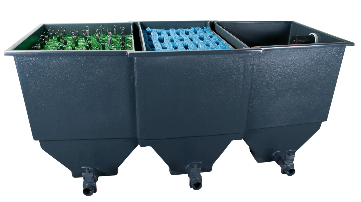 Superfish Poly tech move filter 200Poly Tech Move filters zijn speciaal ontwikkelt voor Koi- en visvijvers en grote waterpartijen.Een Poly Tech Move filter biedt de voordelen van een meer kamerfilter d.w.z. een betrouwbare techniek en stabiliteit door een grote biomassa in combinatie met een zg. floating bed filter wat zorgt voor een extreem goede biologische filtratie.SuperFish Poly Tech Move filter voordelen:• Zeer goede vuilafscheiding door filterborstels in de eerste filterkamer.• Optimale waterdoorstroming door Japanse matten.• Uitstekende beluchting door de filterkamer met het “floating bed” filtermedia.• Eenvoudig schoon te maken; “floating bed” media is zelfreinigend.Extreem goede biologische werking door Floating Bed FiltratieFloating Bed Filtratie is ontwikkeld in de aquacultuur. Het bestaat uit in het water zwevende gekartelde kunststof ringen met een zeer hoog hechtingsoppervlak wat doormiddel van beluchting continu in beweging gehouden wordt. De beluchting komt van de bodem zodat het filtermedium steeds omgewoeld wordt. Bacterieculturen zullen zich zeer goed ontwikkelen en na circa 2 maanden zullen de witte ringen dan ook bruin gekleurd zijn door de bacteriën. Het systeem is zo goed als onderhouds vrij en biologische werking is extreemHet Superfish Poly Tech move 200 filter is geschikt voor koivijvers tot 100.000 liter. Maximum pomcapaciteit 25.000 liter per uurAfmetingen: 225 x 108 x 100 cmKlik hier voor de Superfish vijverbrochure met de Poly tech move filter